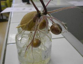 L'élève peut observer, semaines après semaine, l'évolution de sa pomme de terre : développement des racines et d'une tige feuillée, puis après 8 à 10 semaines, la formation de nouveaux tubercules.