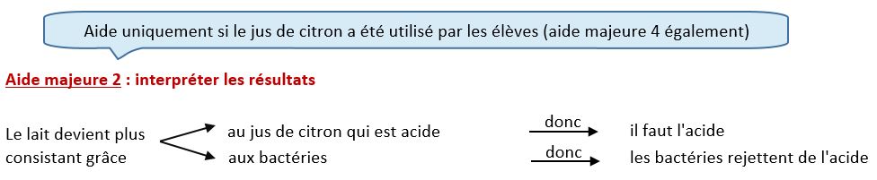 Selon le niveau et l'autonomie des élèves, diverses aides (majeures ou mineures) peuvent être apportées pour aider à l'interprétation et/ou à la conclusion :