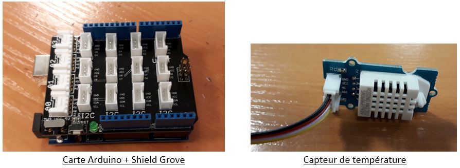 - Composants Grove Shield pour carte UNO, capteurs de température, relai, et facultativement boutons poussoirs, buzzer, écran LCD
