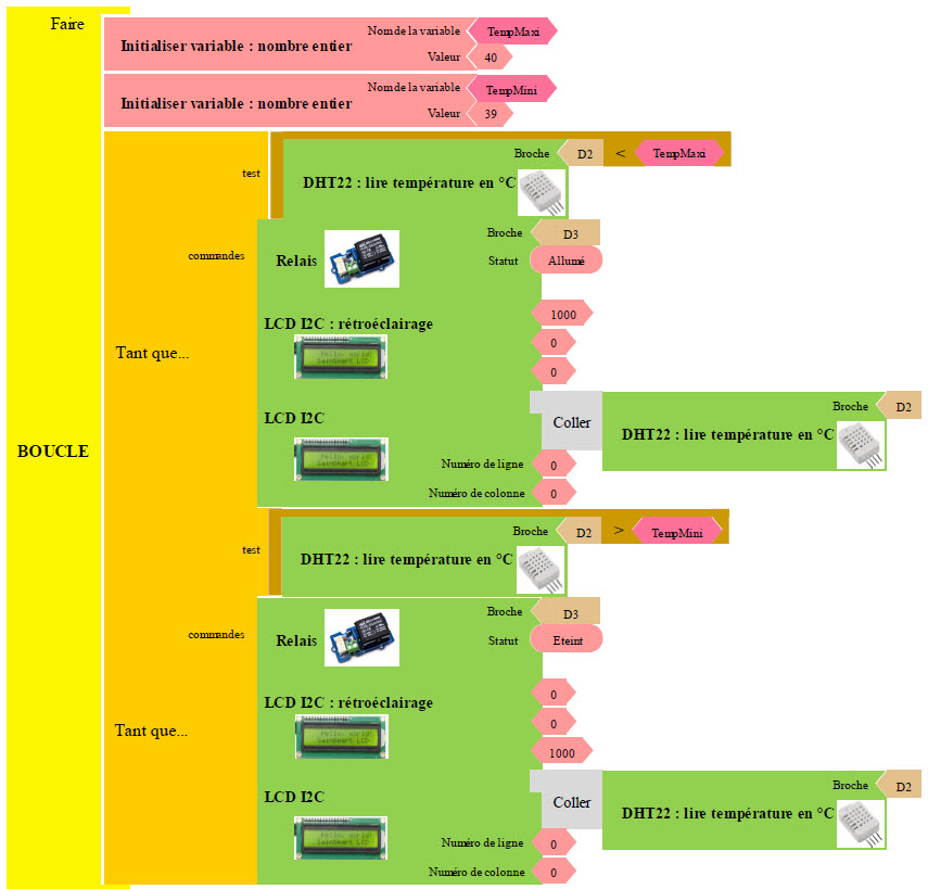 Remarque : dans le chapitre programmation en Physique-Chimie, le programme présenté inclut une prise en charge d'un écran LCD qui indique la température.