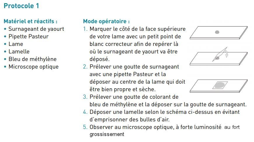 Divers protocoles permettent l'observation des bactéries lactiques et sont proposés sur Eduscol.