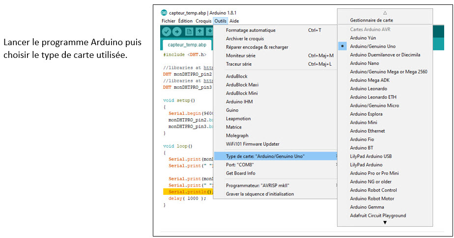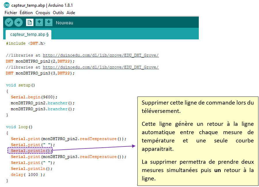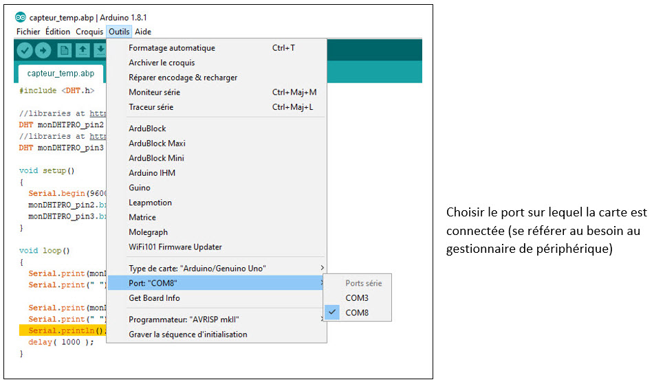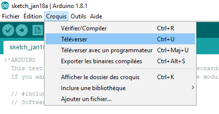 4) Téléverser à nouveau le programme sur la carte pour que la modification effectuée soit prise en compte.