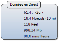 Les valeurs pour un point peuvent être visualisées en déplaçant le curseur de la souris. Elles s'affichent sur la gauche dans l'encadré "Données en direct".