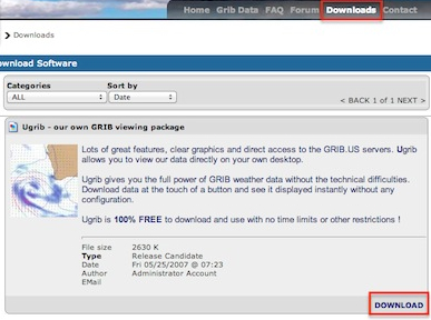 Une fois connecté sur le site d'ugrib, aller dans la rubrique Downloads puis cliquer en bas de la page sur le bouton " Download".
