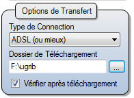 Il faut dans un premier temps déterminer un dossier de destination des données qui seront téléchargées. Ce paramètre est à déterminer dans le volet "Options de transfert".