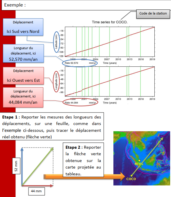 Chaque élève recevra un document d'une station où est indiqué le déplacement Nord-Sud et Est-Ouest, en millimètre (fichier à télécharger ci-dessous).