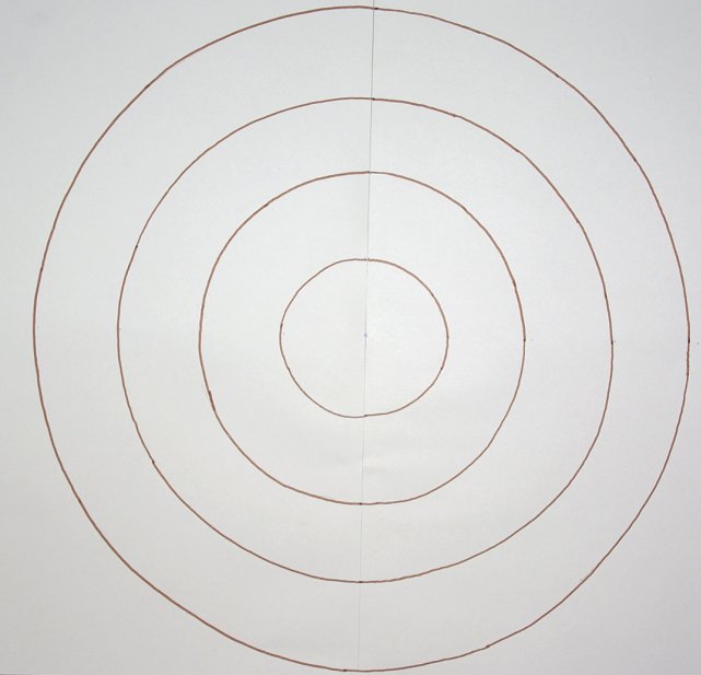 Une feuille A3 ou deux feuilles A4 scotchées entre elles sur lesquelles sont représentés des cercles concentriques.