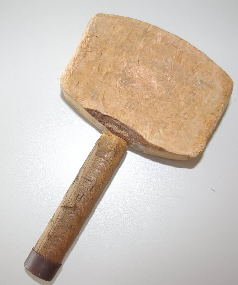 2 - Un coup sec est donné sous la table à l'aide du maillet, à la verticale du point central.