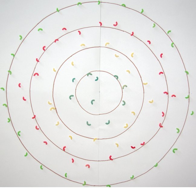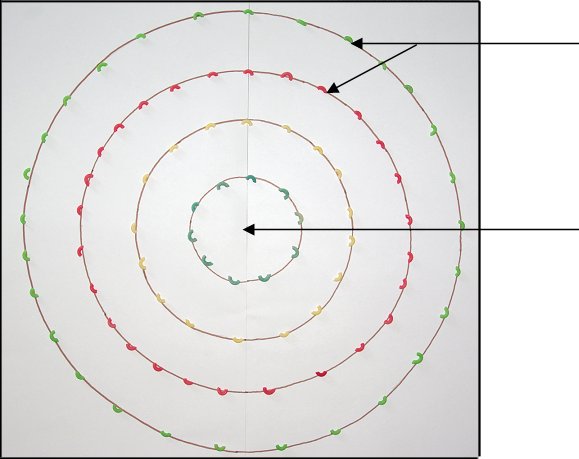 1 - Les repères colorés sont disposés sur les cercles concentriques (une couleur par cercle)