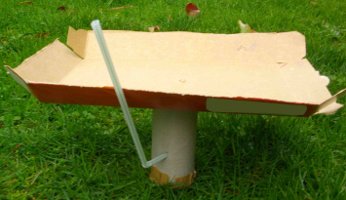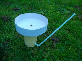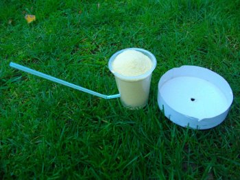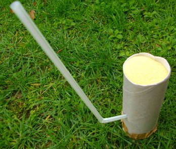 Le pot de yaourt est percé afin d'y introduire la paille. Un trou est réalisé au milieu du couvercle (diamètre : 5 mm). Le pot est rempli de semoule fine. Il suffit de souffler dans la paille pour faire sortir la semoule par le trou du couvercle. Un cône de semoule se forme alors.