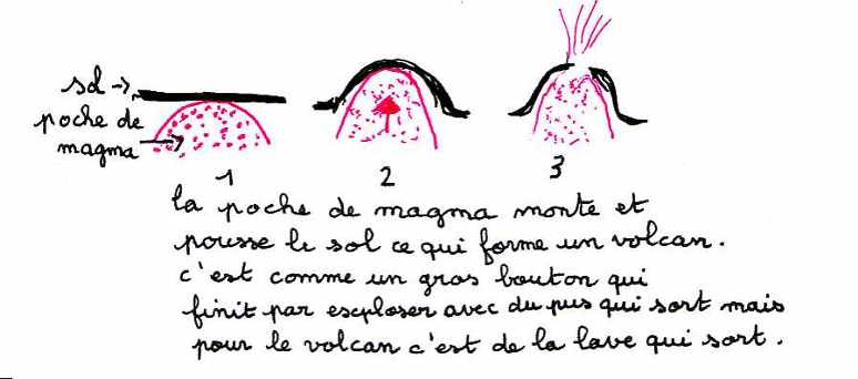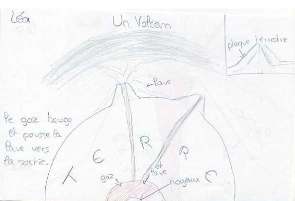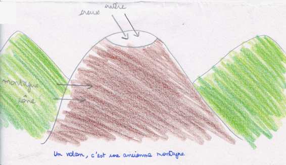 Dans de nombreux cas, les élèves imaginent que le volcan s'est formé à partir d'une montagne préexistante ou d'un amoncellement de pierres emportées par le vent.