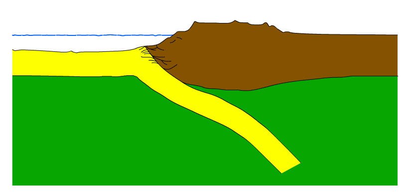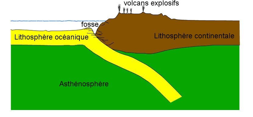 Lorsqu'une lithosphère océanique rencontre une lithosphère continentale, on peut observer :