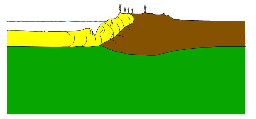 5- Identification de la nature du volcanisme et de la répartition des volcans dans cette limite de plaques.(la référence à un document antérieur est possible, le logiciel TECTOGLOB permet aussi de faire apparaitre cette répartition).