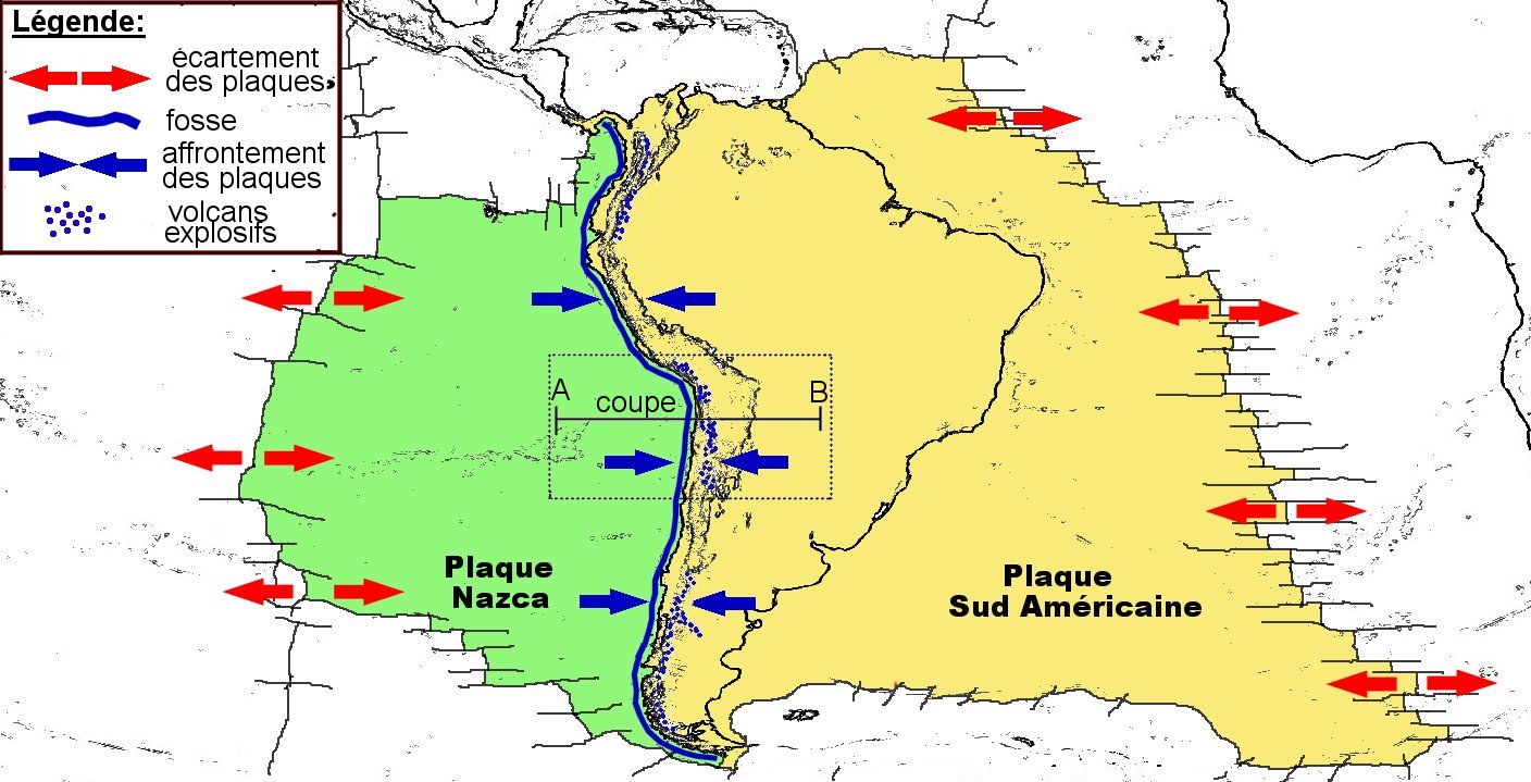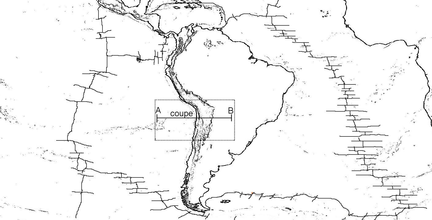 3 - Repérer le relief qui borde le continent sud américain en limite de plaques. Surligner sur la carte la fosse océanique le long du continent sud-américain (référence à la carte de répartition mondiale des séismes par exemple);