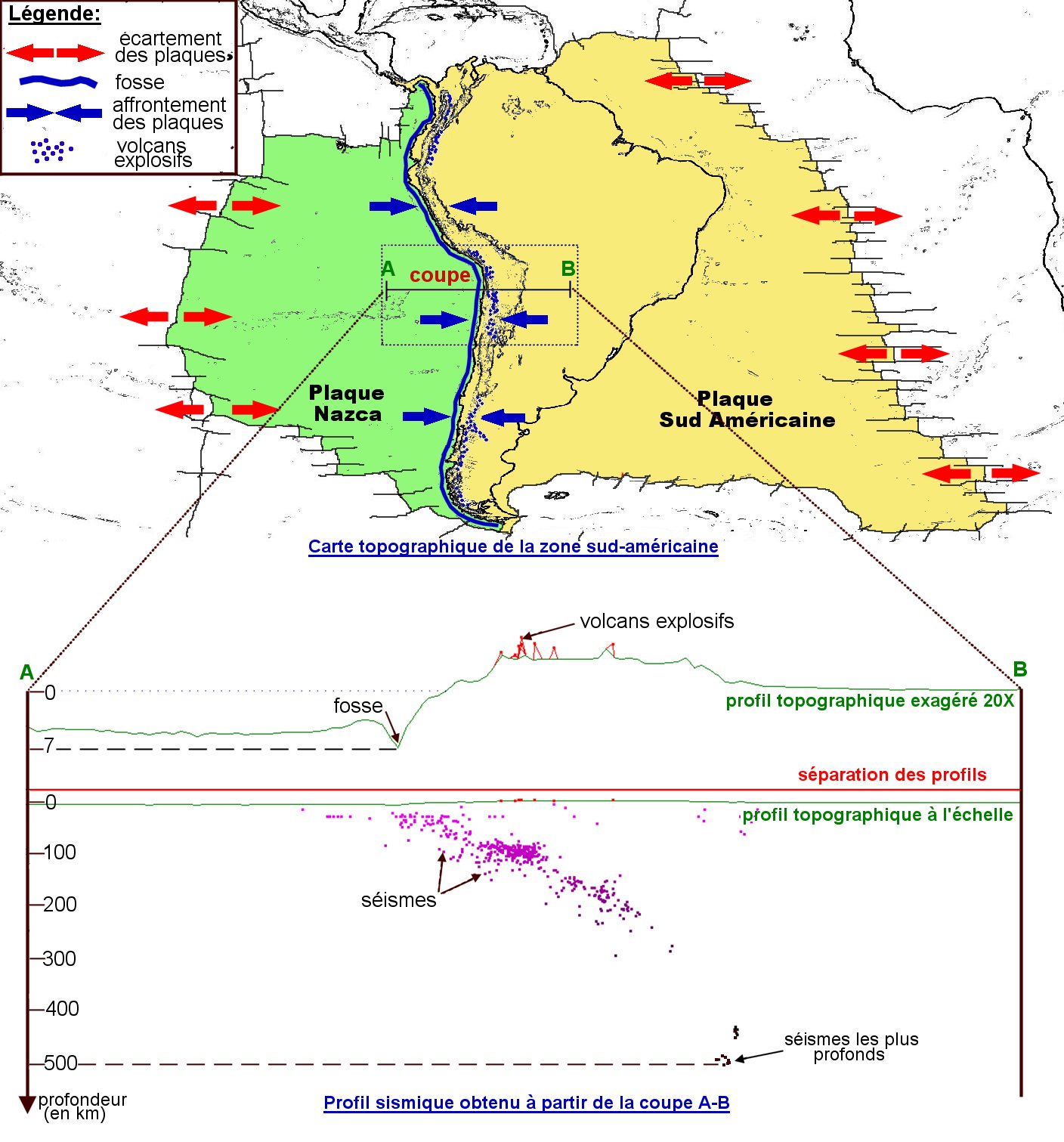 Seule la méthode sismique permet d'identifier la structure profonde du globe et donc peut nous renseigner sur le comportement de ces deux plaques. Le logiciel TECTOGLOB permet de localiser les séismes en profondeur au niveau de la coupe AB.