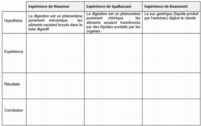 L'étude de la digestion en classe peut être l'occasion avec les élèves de revenir sur quelques expériences importantes dans l'histoire des sciences comme celles de Réaumur, Spallanzani et Beaumont. Cette étude sera complétée d'un compte rendu rédigé dans l'outil collaboratif d'e-lyco : le "PAD"