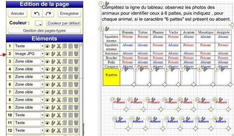 Pour que l'élève puisse compléter le tableau, il faut placer des zones cibles dans les cases susceptibles d'être complétées, puis prévoir les zones textes déplaçables à placer dans les cases.