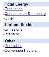 La consommation de charbon, de pétrole et de gaz ne se limite pas à la production d'énergie électrique. Le fichier "sources_co2_04_09.zip" contient en ensemble de données issues du site de l'EIA. Les trois fichiers ci-dessous sont présents dans l'archive décompressée.