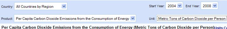 Les données correspondent aux calculs du nombre de tonnes (métriques) de CO2 par habitant et par an sont disponibles sur la site de EIA. Agence fédérale dépendant du département de l'énergie des USA.