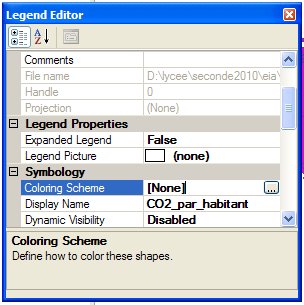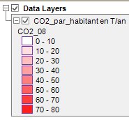 Pour afficher une coloration en classes (la couleur dépend de la valeur d'une variable associée à chaque entité de la couche d'information) il faut ouvrir l'éditeur de légende par un double clic sur le nom de la couche d'information.