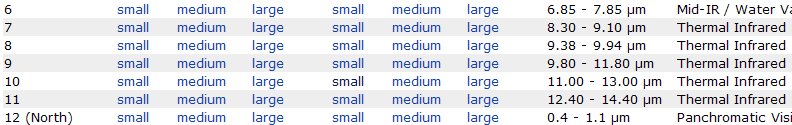 Les images des satellites géostationnaires sont les plus faciles à utiliser. L'accès aux archives du statellite SEVIRI permet de choisir le type d'image.