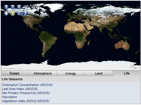 Cette première partie du chapitre "Le soleil : une source d'énergie essentielle" est l'occasion de faire le lien entre les niveaux métaboliques, cytologiques et globaux de la photosynthèse. Si les deux premiers niveaux font appel à une expérimentation et à une observation microscopique désormais classiques, l'étude de la productivité primaire au niveau global permet d'utiliser une approche spatiale du phénomène aussi bien au niveau de la mesure de la productivité que de celle de ses facteurs déterminants. Le système d'information géographique en ligne NEO (NASA Earth Observations) s'appuyant sur des données issues de satellites d'observation de la Terre peut être utilisé pour mettre en relation les différents paramètres.
