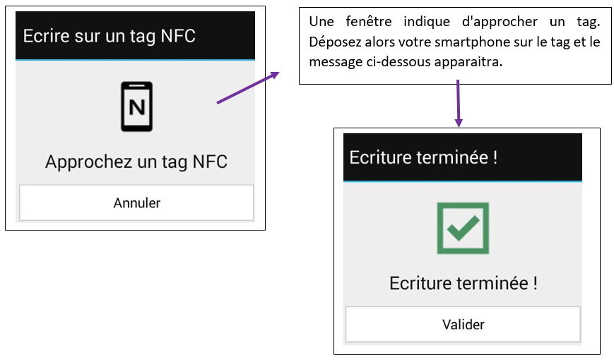 - L'utilisateur n'a pas besoin d'avoir installé une quelconque application pour lire un Tag NFC. Si la fonction est activée dans l'appareil, le Tag NFC sera lu et l'instruction exécutée.