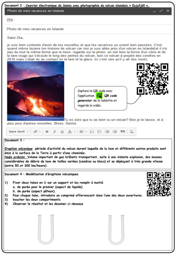 Ci-dessous une activité tirée de la tâche complexe proposée par l'académie de Nancy-Metz, devenue une tâche complexe augmentée en y ajoutant des QR codes pointant vers des ressources numériques en ligne: