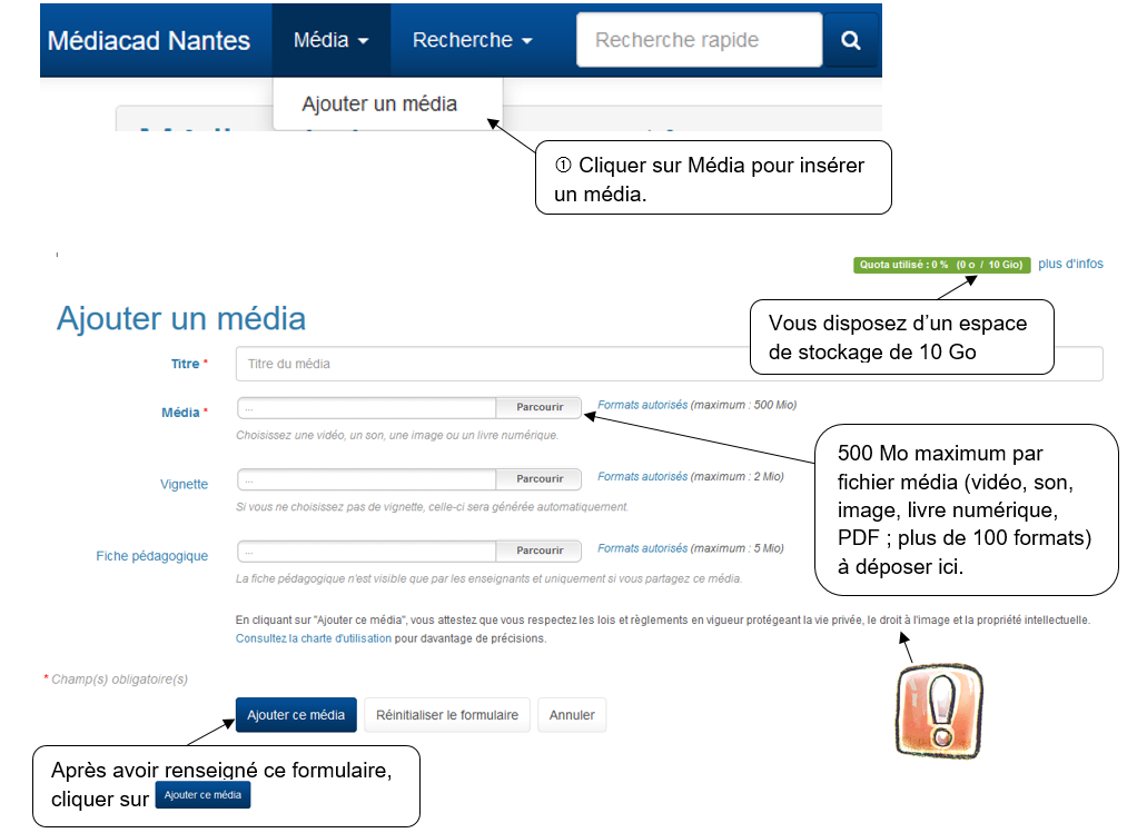 Partager un média sur Mediacad de l'Académie de Nantes