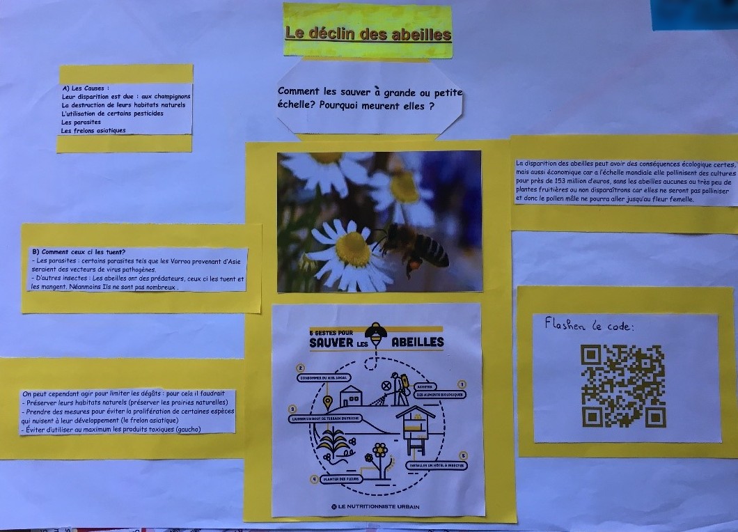 • Sur une affiche réalisée par l’élève afin de la rendre « augmentée » : ici des affiches réalisées par des élèves de 3èmes.