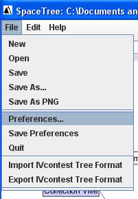 - Pour Space Tree, les possibilités sont regroupées dans le menu "File" puis "Preferences"...Divers choix s'offrent concernant les formes de l'arborescence repliée, l'orientation de la clé (verticale ou autre) etc...