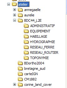 L'utilisation de postes isolés impose de construire sur chacun d'eux la même structure de dossier. Elle ne permet pas la mise en commun des travaux réalisés. Il est donc tout à fait logique, dès lors que l'on peut utiliser les possibilités d'un réseau informatique, de dédier une partie de l'espace disque réseau au stockage des données. On peut imaginer de créer un dossier "SIG" qui sera accessible à tous les élèves concernés aussi bien en lecture qu'en écriture.