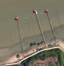 Les pêcheries dans l'estuaire de la Loire ont été repérées sur la BDOrtho par une groupe d'élèves dans le cadre d'un travail de la classe Estuaire du Lycée Jean Perrin de Rezé.