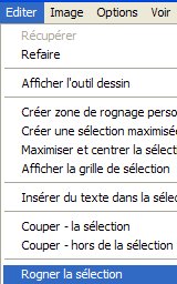 La commande "Editer/Rogner la sélection" permet ensuite de faire une sauvegarde au format jpg de l'image partielle qui sera enregistrée dans un dossier spécifique.