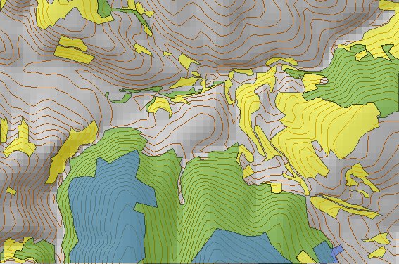 Au terme du travail en utilisant la fonction polynomiale 1, des erreurs subsistent mais la carte est cependant exploitable pour un travail sur le couvert forestier.