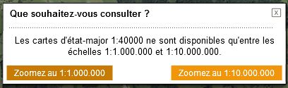 La sélection de la localité permet ensuite d'utiliser le bouton "Remonter le temps". Il faut ensuite sélectionner les cartes d'état-major.