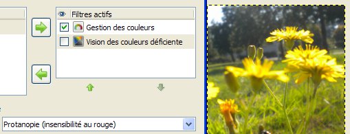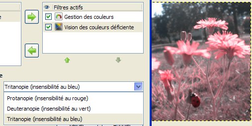 Comment simuler les déficiences visuelles liées à la perception des couleurs ? Un logiciel de traitement d'image gratuit comme Gimp peut réaliser cette opération et nous permettre d'obtenir nos propres documents photographiques pour illustrer cette partie du programme des premières S, ES et L. L'utilisation de cette fonction nous permet aussi de vérifier la lisibilité de nos schémas ou autres images par d'éventuels élèves atteints de daltonisme.