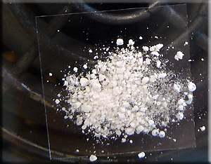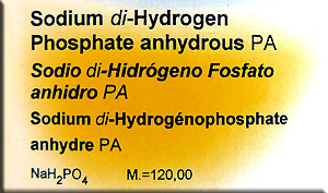 - Déposer une pointe de spatule de dihydrogénophosphate de sodium anhydre sur une lame et, sur une autre lame, le dihydrogénophosphate de sodium hydraté.