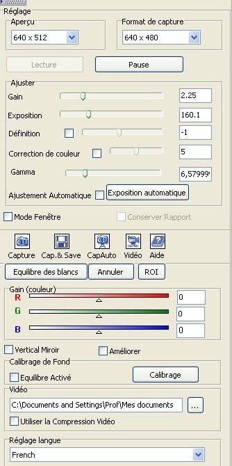 Ici il ne faudra pas utiliser MESURIM mais le logiciel propre à la caméra (en français celui là) et il faudra le paramétrer de manière à obtenir une image qui occupe toute la taille de l'écran :