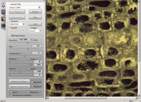 Le réglage est effectué en jouant d'abord sur les paramètres optiques du microscope. Un léger ajustement avec la vis micrométrique est parfois nécessaire pour améliorer la netteté au niveau de l'écran de visualisation. Il faut ensuite ajuster les paramètres numériques de la capture en jouant sur les différents curseurs et terminer l'action en utilisant le mode de capture souhaité. Pour les vidéos, des restrictions peuvent apparaître en fonction des performances de l'ordinateur et des codecs disponibles.