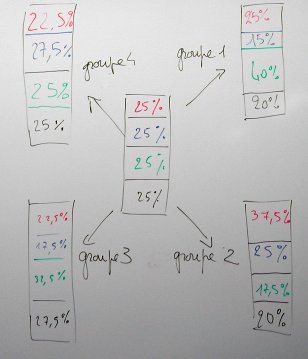 Une simulation analogique basée sur une population de 20 individus possédant 4 allèles avec des fréquences de 25 % au départ conduit à constater que les résultats sont différents d'un groupe à l'autre alors que la procédure était la même pour tous. Il est donc établi qu'au sein d'un petit groupe d'individus se reproduisant entre eux, les fréquences alléliques peuvent varier fortement de façon aléatoire. L'utilisation itérative du petit logiciel qui reproduit l'expérience analogique conduit même à constater que certains allèles peuvent disparaître et que ce ne sont pas les mêmes d'une simulation à l'autre.