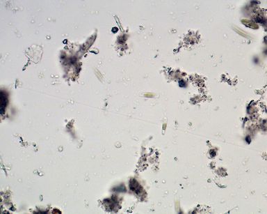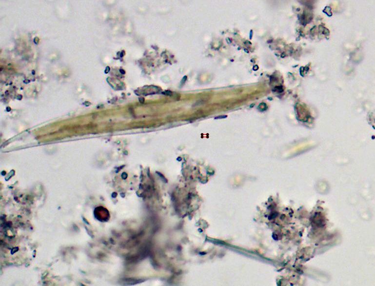 Une vue au fort grossissement (objectif x40) montre que ces organismes sont souvent des diatomées qui contiennent de la chlorophylle à l'intérieur de leur unique cellule. Ces organismes présents dans l'eau de mer pourraient être utilisés comme aliment par les bivalves filtreurs.