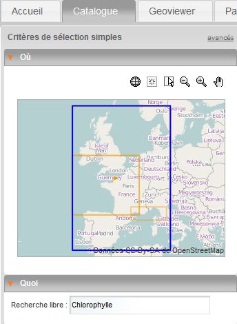 Dans la partie "Catalogue" plusieurs modes de sélection possibles. La recherche libre avec le mot Chlorophylle permet d'accéder à différentes ressources.