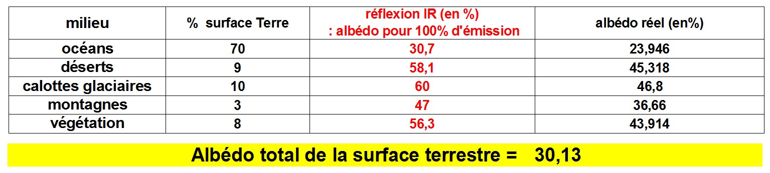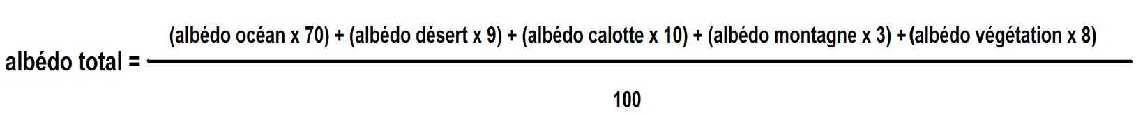 L'albédo terrestre actuel est de 30%. Pour l'estimer expérimentalement il faut tenir compte de 2 facteurs :