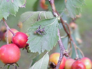 Rhagoletis pomonella mâle et femelle sur l'aubépine (Crataegus mollis L.)