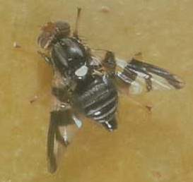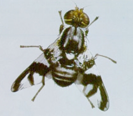 Les mouches du genre Rhagoletis appartiennent à la classe des Diptères et à la famille des Trypétidés ; leurs larves se nourrissent de fruits et les adultes de sucs émis par la plante à la suite de blessure(s) ou de nectar des fleurs.