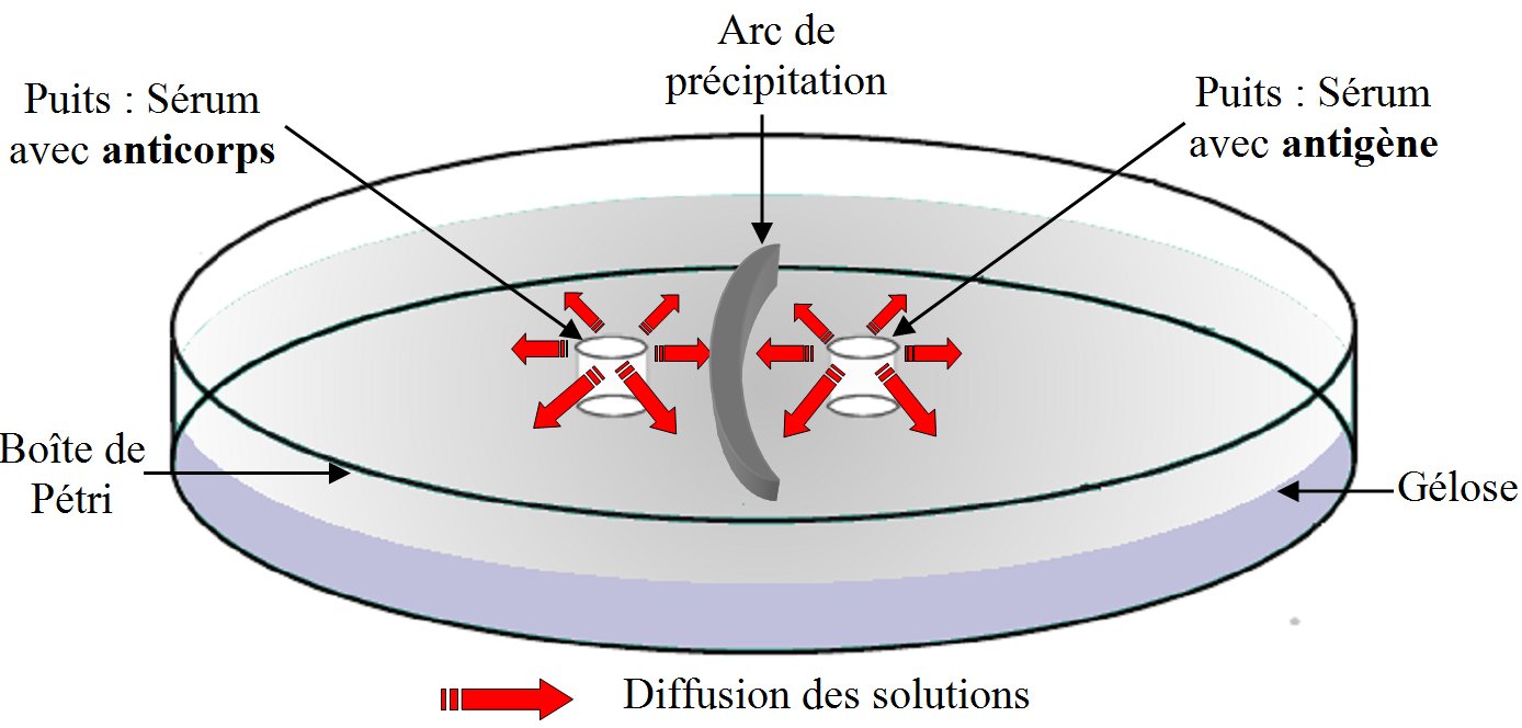 C'est une méthode d'immunodiffusion sur gel : les solutions déposées dans les puits creusés dans le gel diffusent de façon homogène dans toutes les directions autour du puits. Deux auréoles de diffusion peuvent donc entrer en contact lorsqu'elles ont suffisamment progressé. Cette zone de contact reste invisible s'il n'y a pas de réaction entre les deux solutions. Quand il y a réaction entre les solutions, il se forme un arc de précipitation visible à l'œil nu. Celui-ci est dû à l'interaction entre de nombreux anticorps et les antigènes spécifiques.