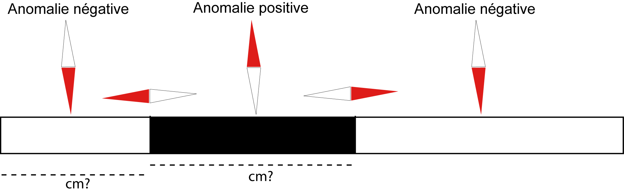On peut demander à l'élève de reporter sur le graphique obtenu la position des différentes bandes d'anomalies magnétiques du profil obtenu avec la boussole.