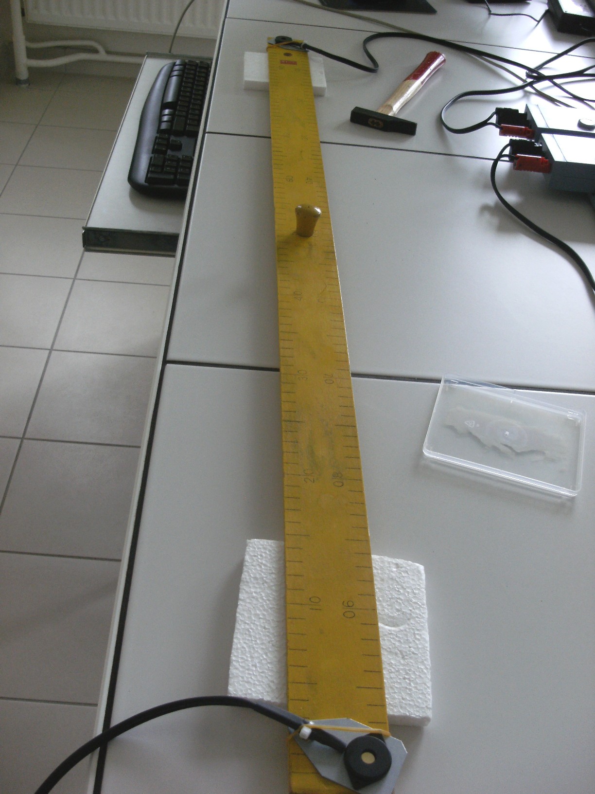 Les carrés de polystyrène, placés sous l'échantillon, permettent d'éviter la propagation des ondes dans la table.