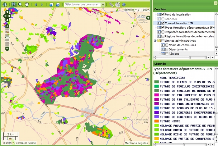 - Le site de l'Inventaire Forestier National (IFN), propose un SIG en ligne qui inventorie les espèces présentes dans les forêts.